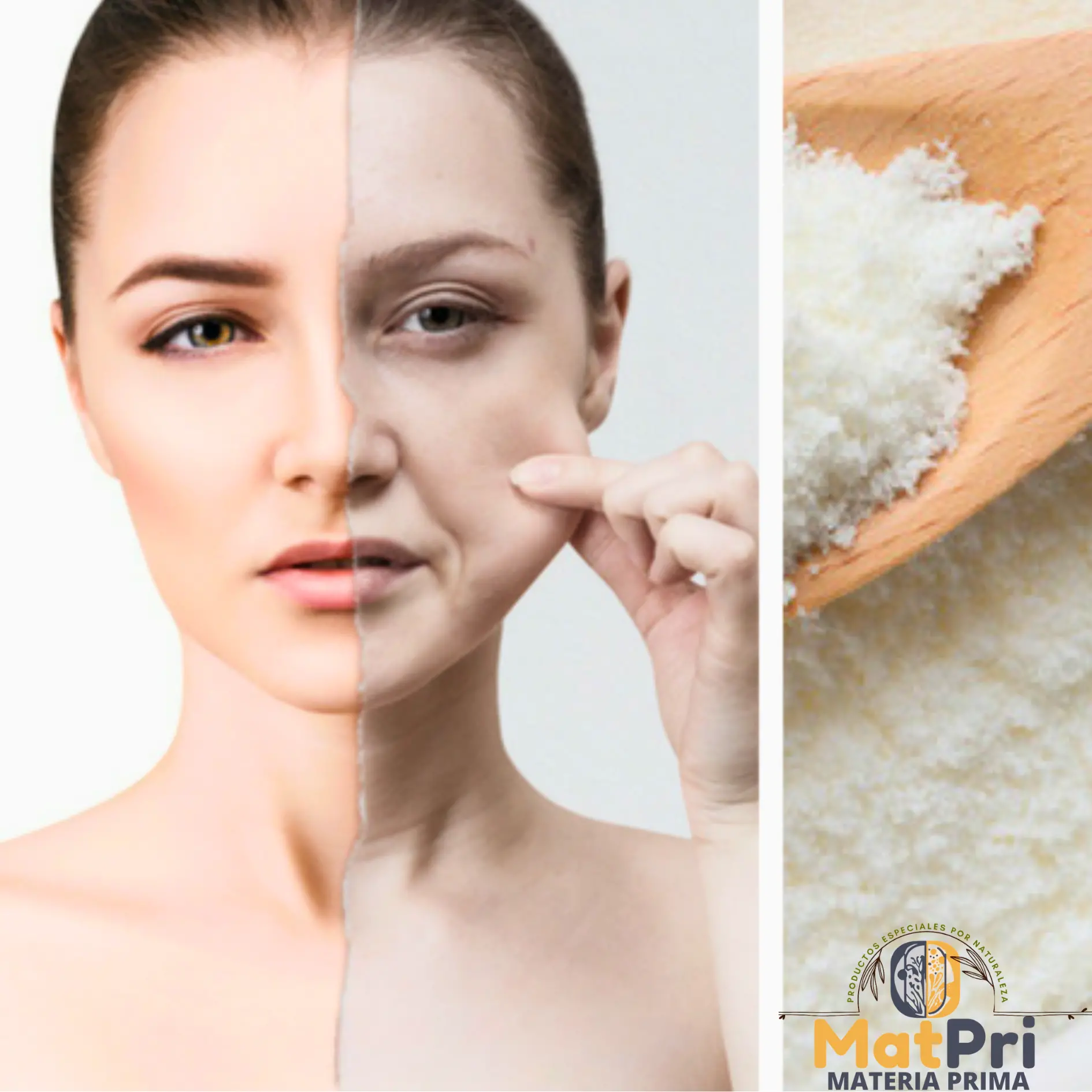 El Colágeno Marino Hidrolizado, es un ingrediente considerado antioxidante. Por sus propiedades funcionales es usado en la industria de alimentos al ser fuente oral para mejorar la salud de la piel, las uñas y el pelo, además atrae la absorción de agua por lo que estimula la hidratación lo que hace rejuvenecer la piel.
